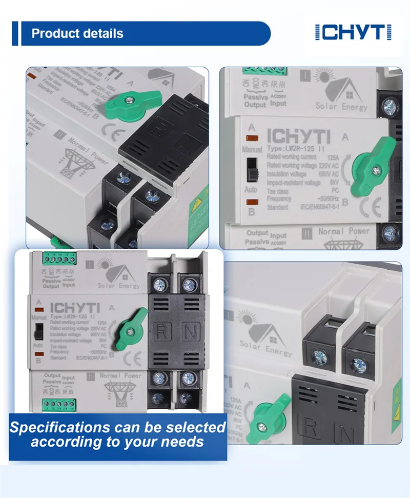Le commutateur inverseur ICHYTI 100a ats fabriqué en Chine est un dispositif utilisé dans les systèmes d'alimentation de secours, adapté aux tensions nominales ne dépassant pas 1 000 V CA ou 1 500 V CC. Sa fonction principale est d'interrompre l'alimentation de la charge pendant le processus de conversion de puissance.