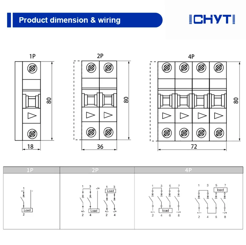CHYT, un fabricant réputé en Chine, est prêt à vous proposer un disjoncteur pour panneaux solaires. Nous nous engageons à vous fournir le meilleur support après-vente et une livraison rapide. Son courant nominal ne doit pas dépasser 63A.