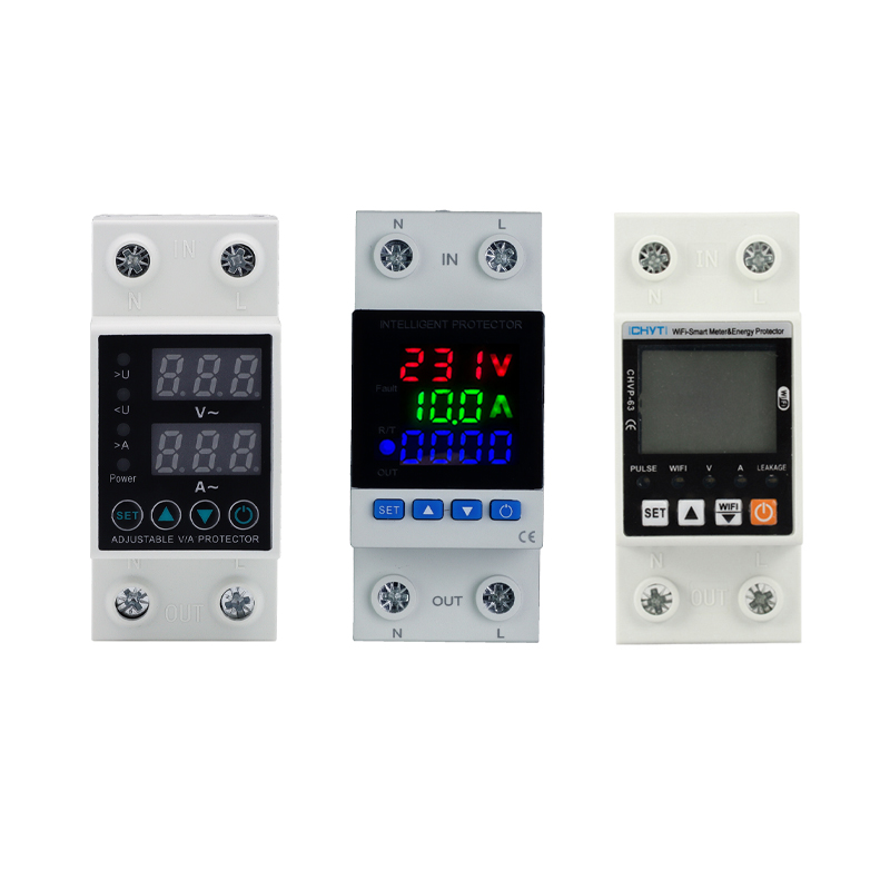 Poussinprotecteur de tension convient aux utilisateurs ou aux charges avec une tension alternative monophasée de 220 V, une fréquence de 50 Hz, un courant de fonctionnement nominal de 63 A et moins. Comme protection des équipements électriques monophasés contre les surtensions et les sous-tensions causées par des défauts de ligne neutre. Principalement utilisé pour la protection des boîtes de distribution résidentielles ou des lignes de distribution nécessitant une protection des équipements électriques monophasés. Les principales fonctions du protecteur de tension comprennent la protection contre les surtensions, la protection contre les sous-tensions, la protection contre les surintensités, la récupération automatique, l'affichage de la tension (mesure de tension) et l'affichage du courant (mesure du courant).
